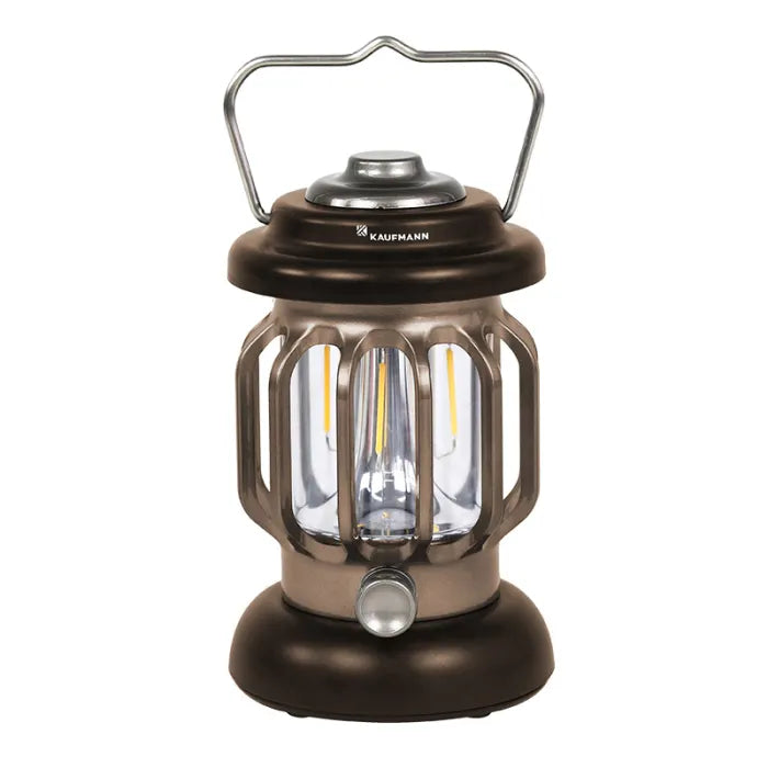 The Kaufmann small rechargeable lantern is a versatile, vintage-style light that features adjustable brightness and a hanging handle. Includes a built-in rechargeable battery.